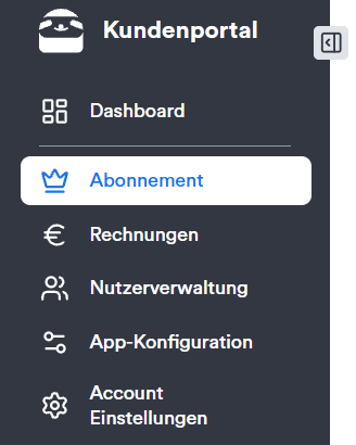 1. Logge dich in den Kundenportal ein und gehe im Menü auf Abonnement: