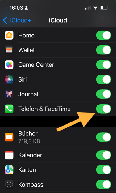 Stelle sicher, dass "Telefon" und "FaceTime" aktiviert sind.