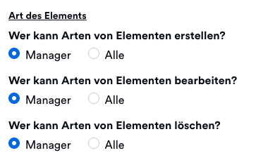 Projects Manager können entscheiden, welche Funktionen nur für sie selbst verfügbar sind und welche auch andere Nutzer nutzen dürfen.