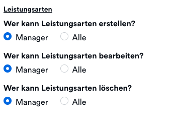 Wähle aus, welche Berechtigungen auch für reguläre Nutzer verfügbar sein sollen.