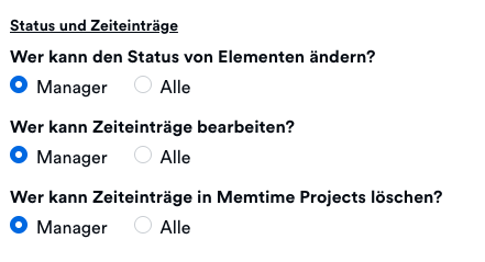 Verwaltung von Berechtigungen innerhalb von Memtime Projects