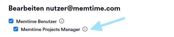 In Memtime Projects kann ein Nutzer Regulärer Nutzer oder Projects Manager sein.