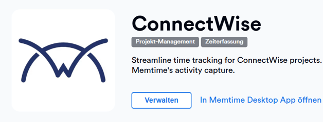 Du kannst Memtime mit ConnectWise verbinden und deine Zeiterfassung auf das nächste Level bringen.