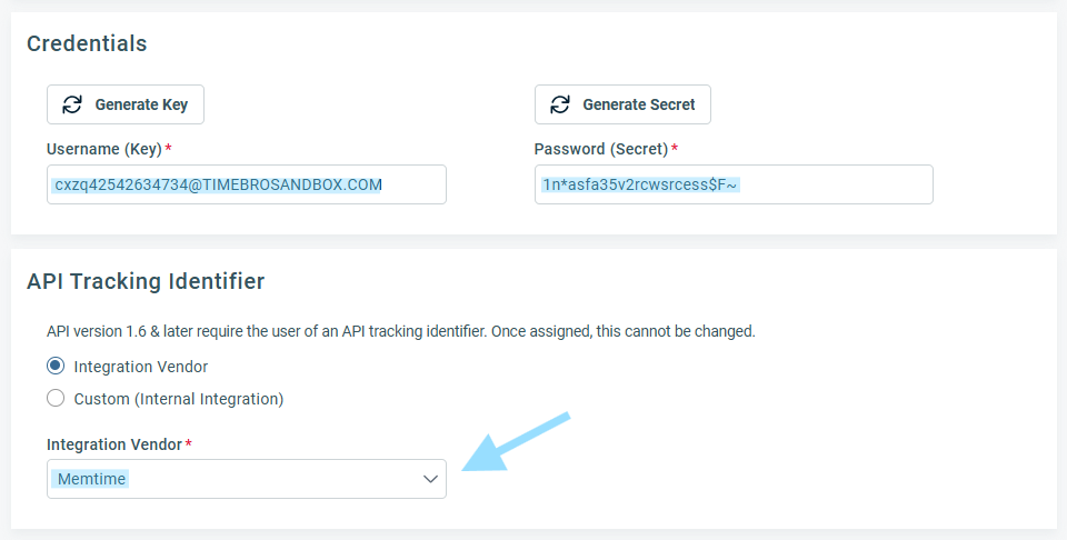 Auf der Memtime-Website gibst du immer deine Autotask-Konto-E-Mail ein, unabhängig von der API-User-E-Mail, die du hier einträgst.