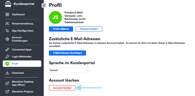 Wenn du ein kostenloses Testkonto erstellt hast und es nicht mehr benötigst, kannst du es direkt im Kundenportal löschen.