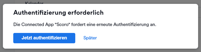 1. Wähle in Memtime Scoro aus der Liste der Connected Apps aus und klicke auf Authentifizieren. Alternativ wirst du automatisch zur Authentifizierung aufgefordert.