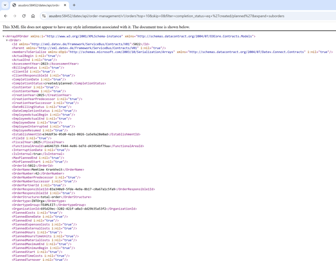 GET http://<adresse>:58454/datev/api/order-management/v1/orders?top=10&skip=0&filter=completion_status+eq+'created/planned'&expand=suborders