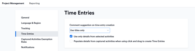 When "Populate details from captured activities" is enabled, time entries created using the click-and-drag method will automatically include these details as comments.