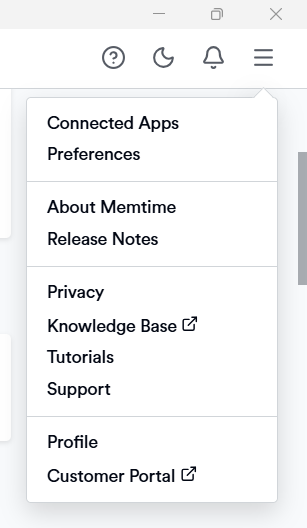 1. Open the Memtime app and click on the menu icon (☰). Select Connected Apps.