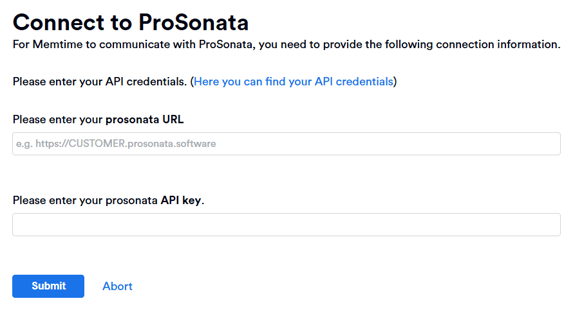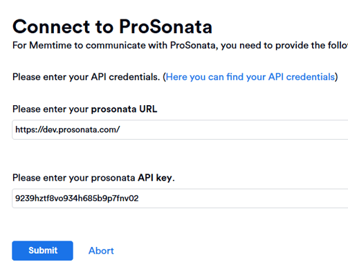 4. After entering your ProSonata API details on the Memtime website, click on "Submit".