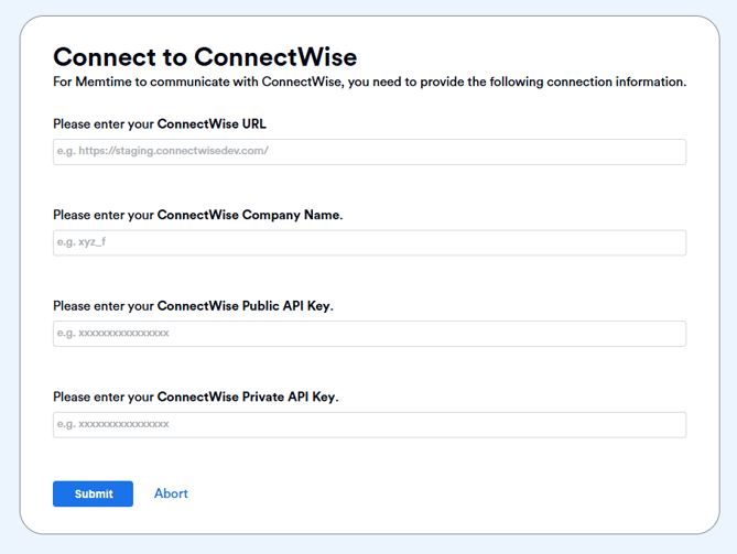 Step 3: Authenticate ConnectWise with Memtime