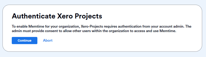 4. You'll see a message that only Memtime account admins can install it. If you’re also an admin in Xero Projects, click Continue.
