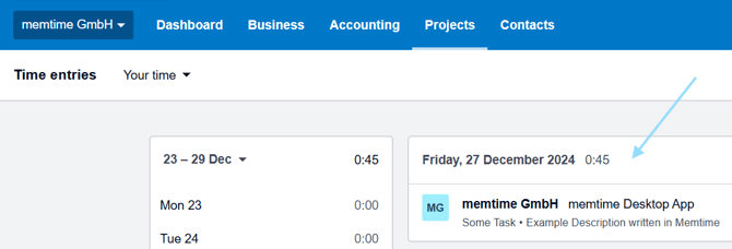 3. Log in to your Xero Projects account and go to your Projects → Time Entries, or any task with time entries to view the time entries synced from Memtime.