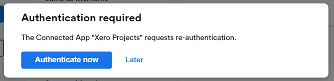 2. Select Xero Projects from the Connected Apps list and click Authenticate.