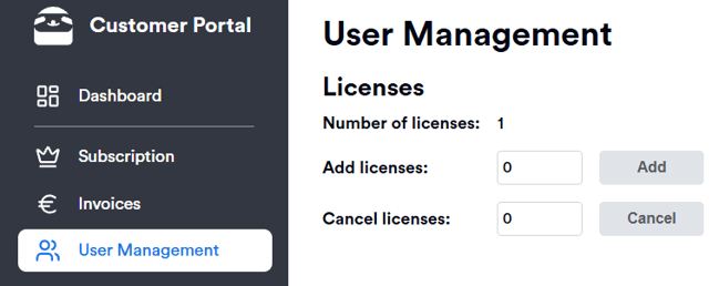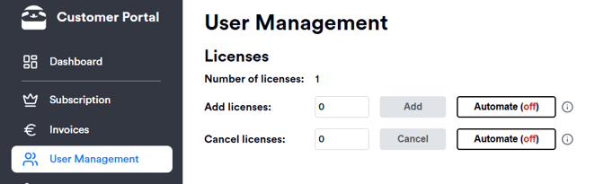 You can increase or reduce your licenses at any time in your Customer Portal on our webpage