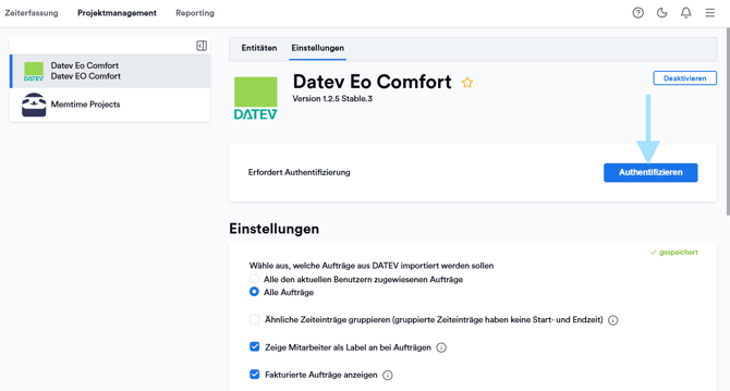 Authenticate Memtime with DATEV EO Comfort (your own user)