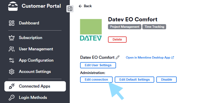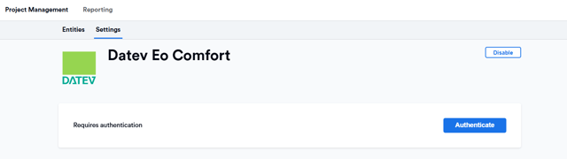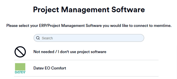 Memtime app → Project management → DATEV EO Comfort → Settings
