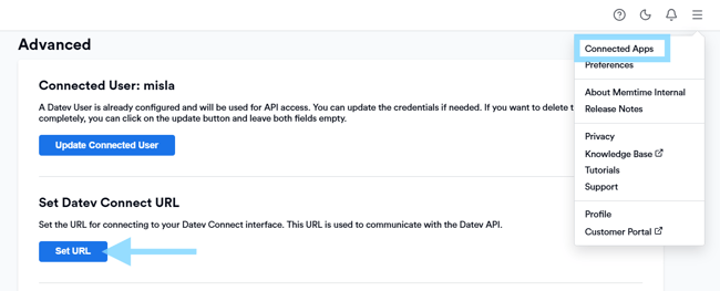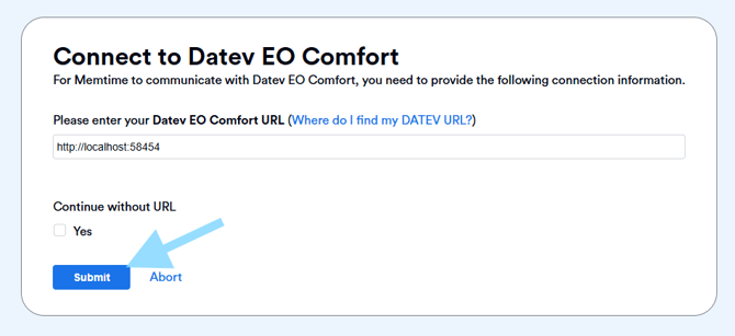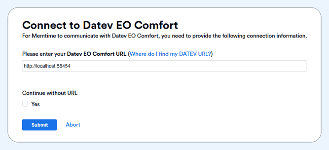 The DATEV Connect URL is required to connect Memtime with DATEV EO Comfort.