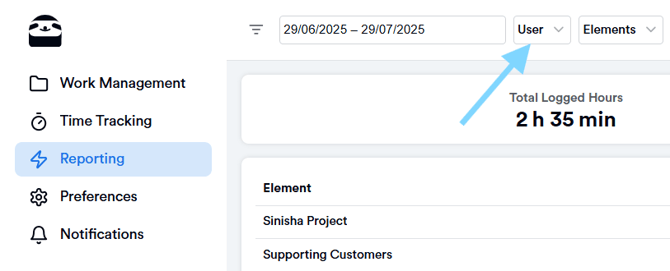 You can create reports for specific projects, customers, or categories. This makes billing easier and helps you analyze hours faster. Just go to the Reporting tab and select the entity you want to filter by.![]()