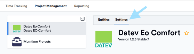 Project management → DATEV EO Comfort → Settings