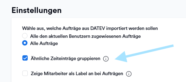 If you prefer grouped entries in DATEV, you can enable a grouping option in Memtime: